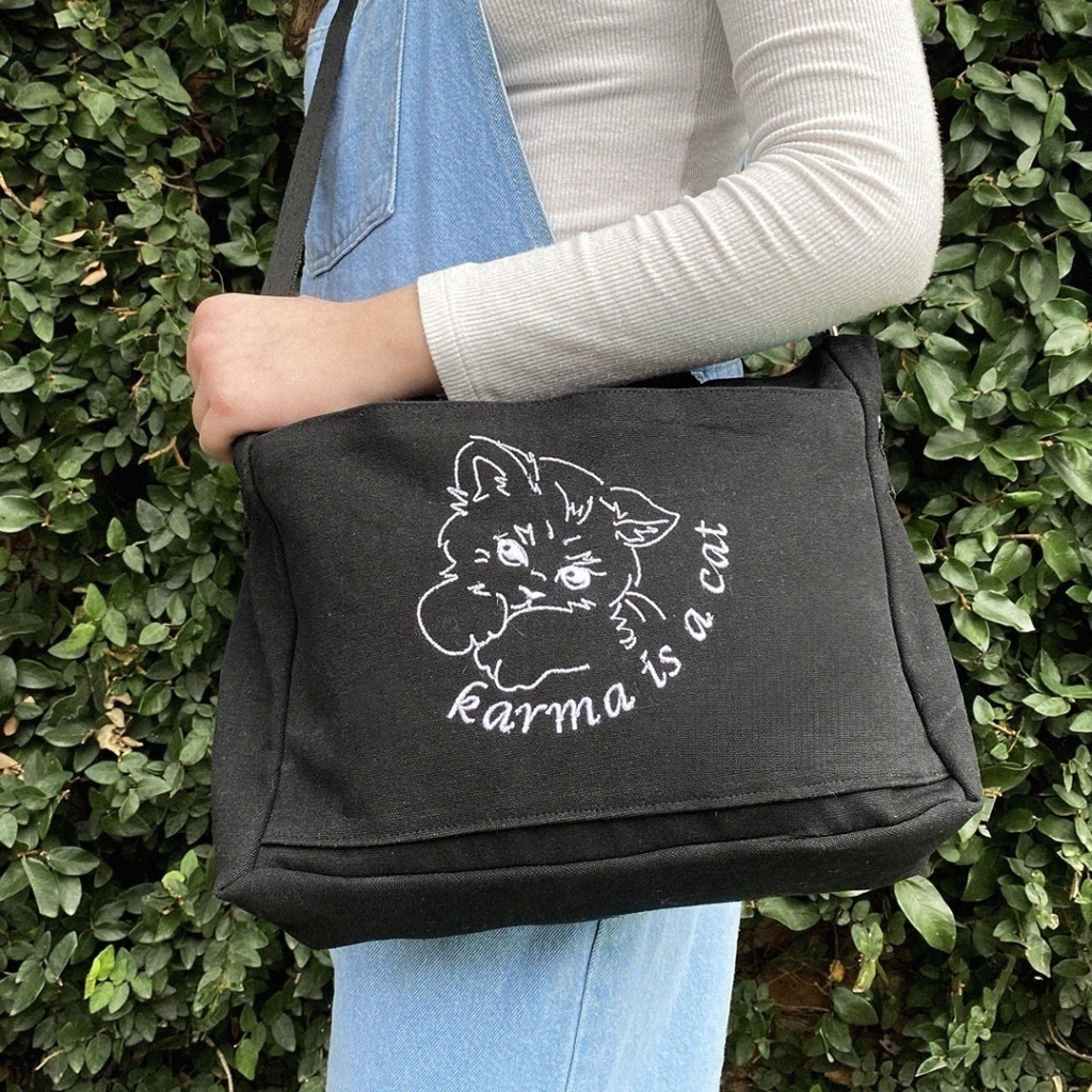 Diseño bordado creado por nosotras y llevado a cabo a máquina (también por nosotras) + terminaciones hechas con nuestras manitos. Todo con mucho amor :)