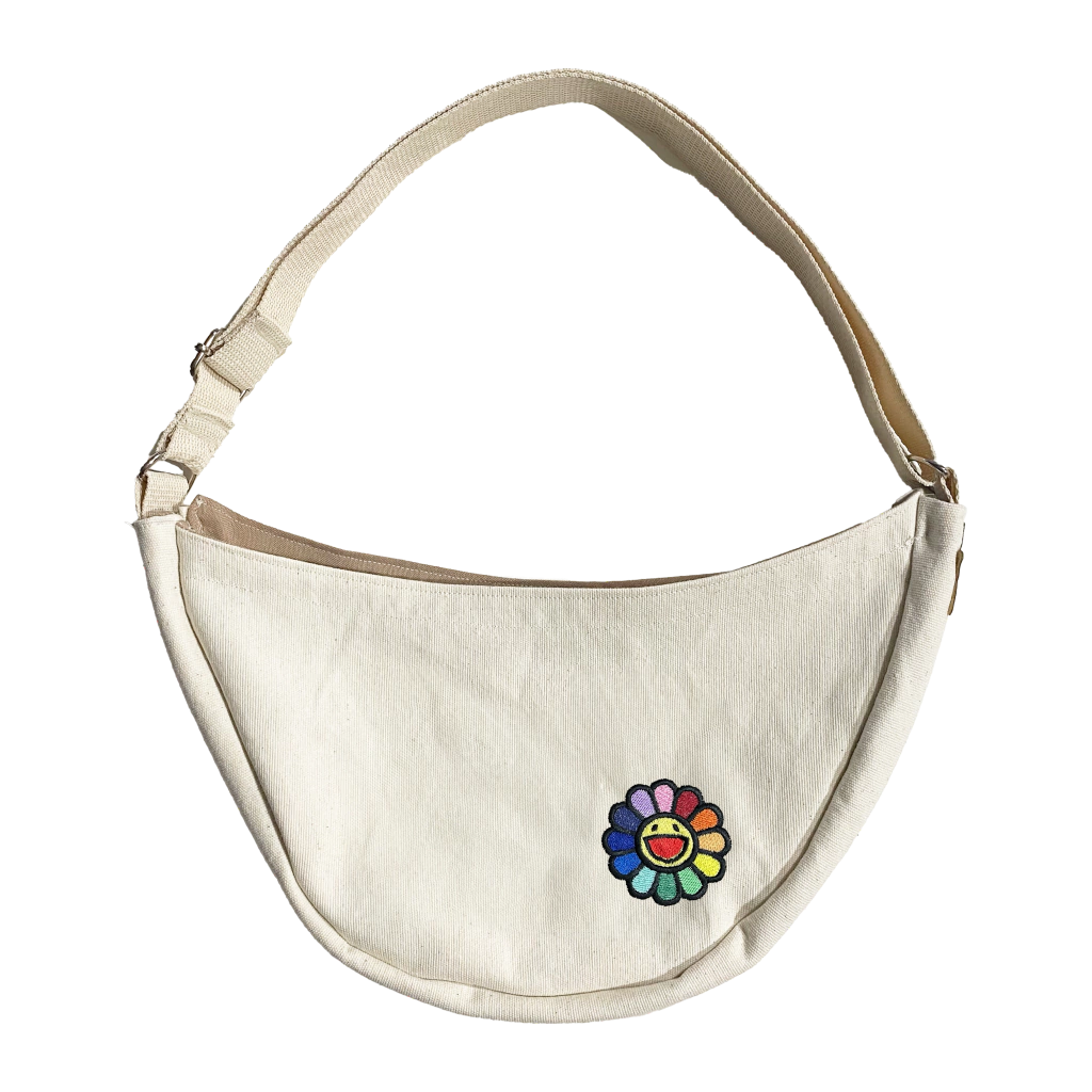 Cartera de lona cruda con cierre. Cuenta con correa regulable de cinta mochilera, forro y bolsillo interno. Se puede usar como riñonera, bandolera o al hombro tipo baguette. Cómoda, liviana y resistente.