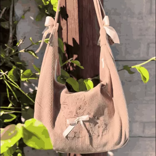 Bolso de corderoy con cierre. Cuenta con correa regulable, forro y bolsillo interno. Cómoda, liviana y resistente.
