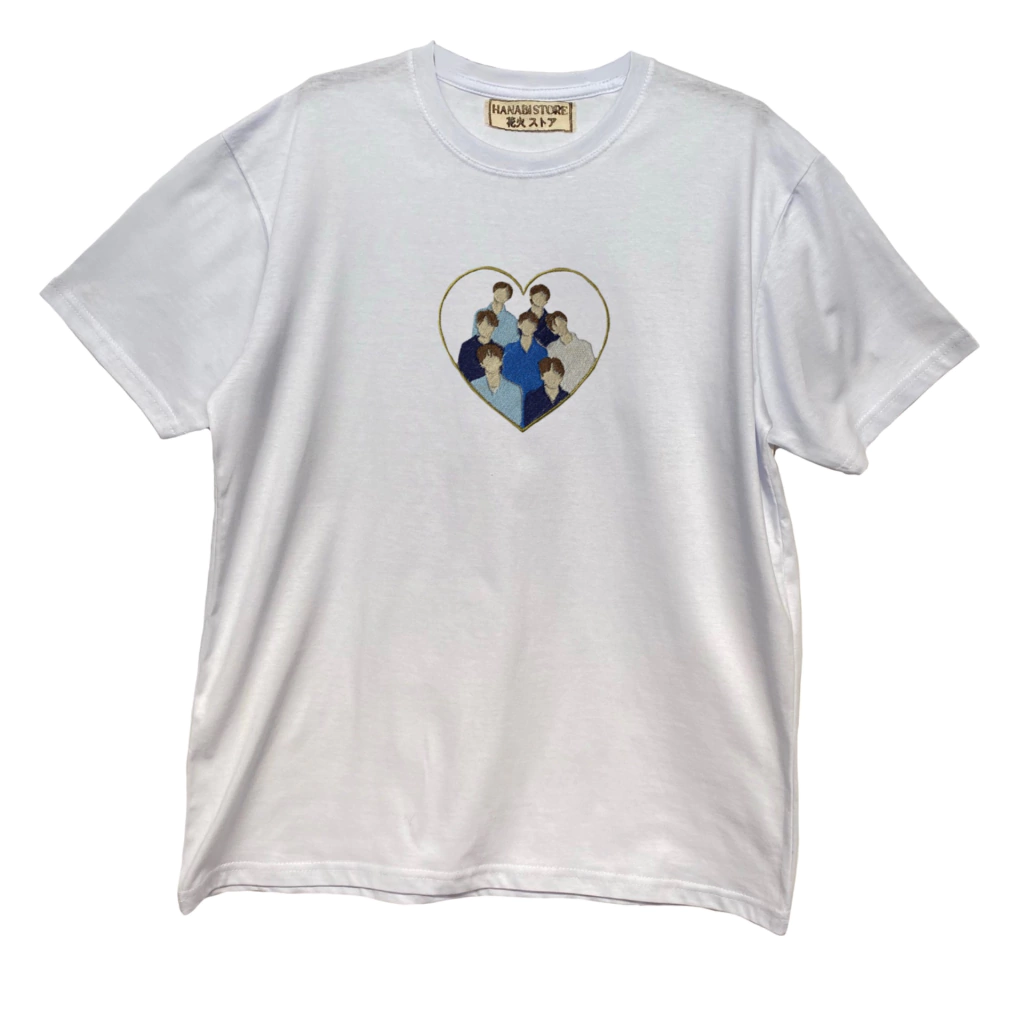 Remera cuello redondo 100% algodón; diseño bordado creado por nosotras y llevado a cabo a máquina (también por nosotras) + terminaciones hechas con nuestras manitos. Todo con mucho amor :)