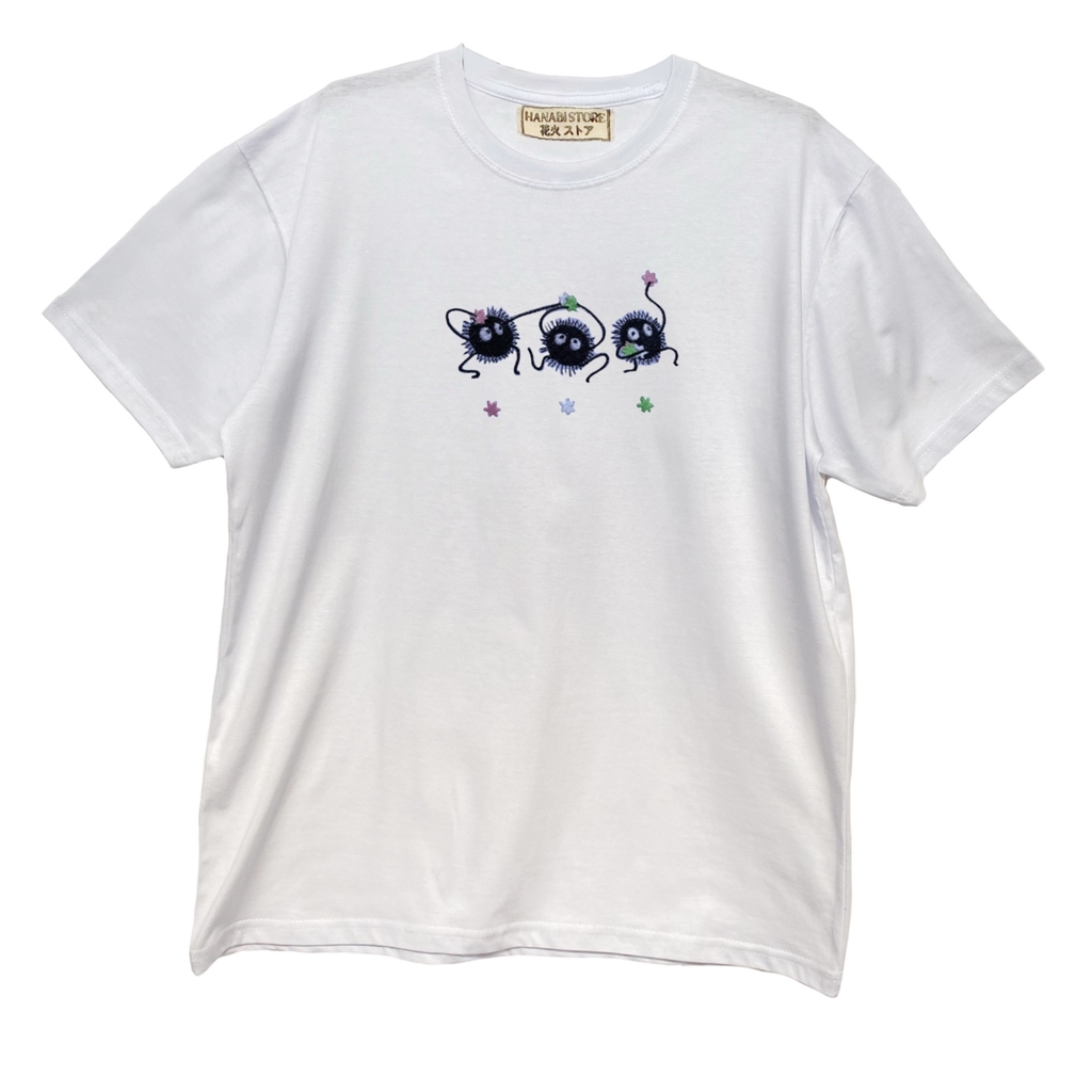 Remera cuello redondo 100% algodón; diseño bordado creado por nosotras y llevado a cabo a máquina (también por nosotras) + terminaciones hechas con nuestras manitos. Todo con mucho amor :)
