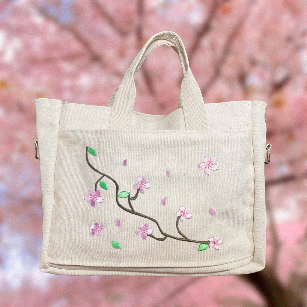 Cartera de lona con cierre. Cuenta con manijas fijas y correa regulable de cinta mochilera, forro y bolsillos interno y externo. Cómoda, liviana y resistente.